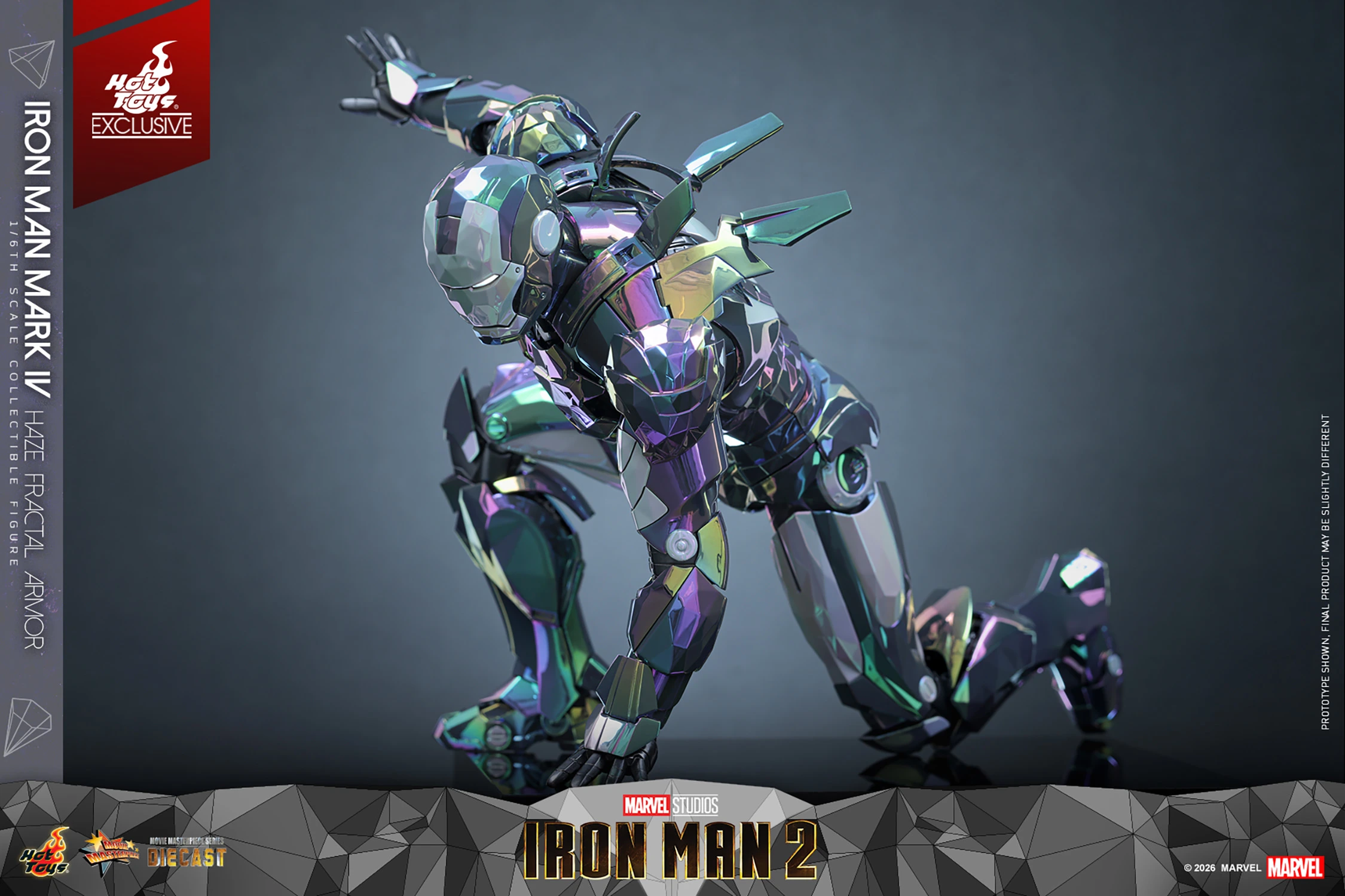 A Sideshow e a Hot Toys têm o prazer de apresentar a figura colecionável em escala 1/6 do Homem de Ferro Mark IV (Armadura Fractal Haze) . Esta releitura visualmente espetacular da clássica armadura de Tony Stark de Homem de Ferro 2 está disponível em uma edição limitada de 2.500 unidades, exclusivamente em mercados selecionados.
